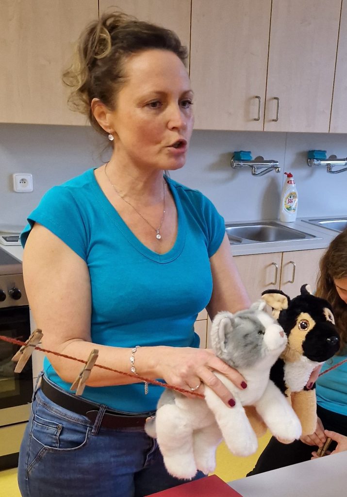 Naše škola opět ukázala, že komunita sílí a zapojují se nejen pedagogové, ale i nepedagogičtí pracovníci. Paní Romana Halmová připravila pro děti z kroužku „Šikovné ručičky“ a žáky školní družiny nádherné loutkové představení pohádky „Jak si Pejsek a Kočička prali prádlo“.