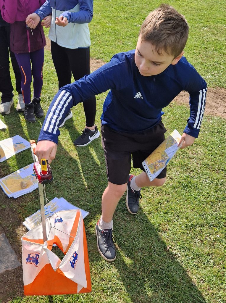 🗺️ Žáci si vyzkoušeli klasický orientační běh, práci s mapou, orientaci v terénu, měření času pomocí čipů i zábavné bludiště.