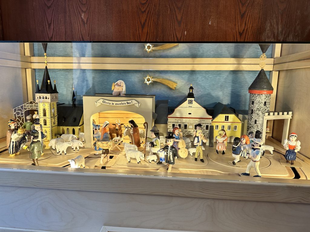 Začali jsme divadelním představením Zpátky do Betléma v Uffu. Jednalo se o představení pánů Pavla Šmída a Vojty Vrtka. Jde o setkání kejklíře a komedianta Vojtěcha se svým panem učitelem u betléma, kde si po letech tento prastarý příběh o narození Ježíška zahrají a společně prožijí. Divadlo hrají sami pánové, někdy využívají i loutky, zapojí i zpěv a kytaru. Snadno tak vtahují do děje i samotné diváky. Celkový výkon obou pánů tedy hodnotíme jako velmi zdařilý.