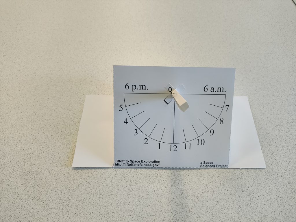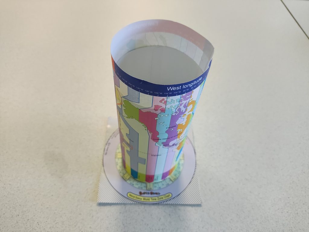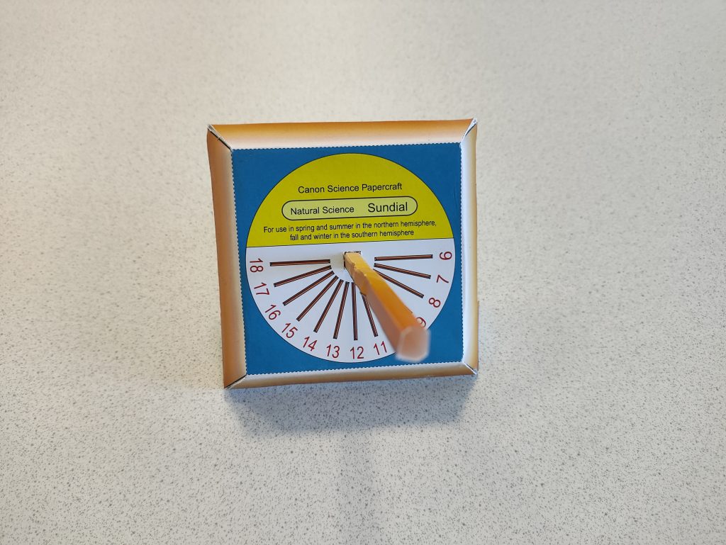 Žáci 6.A měli za úkol přinést slepené sluneční hodiny + model časových pásem.