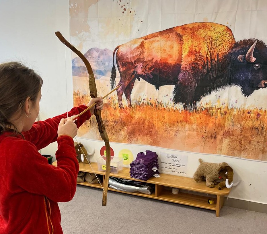 Když jsme zjistili, jak velký význam bizon měl, povídali jsme si o tom, jak lov probíhal. Lov nebyl jen o síle, ale o spolupráci, soustředění a úctě k přírodě a zvířeti.
