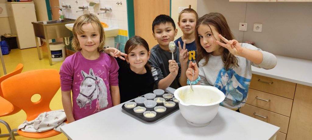 Ve školní družině jsme si tento týden zpestřili odpoledne voňavou a chutnou aktivitou – společně jsme pekli muffiny. Děti si samy odměřovaly suroviny, míchaly těsto a s nadšením připravovaly košíčky.
