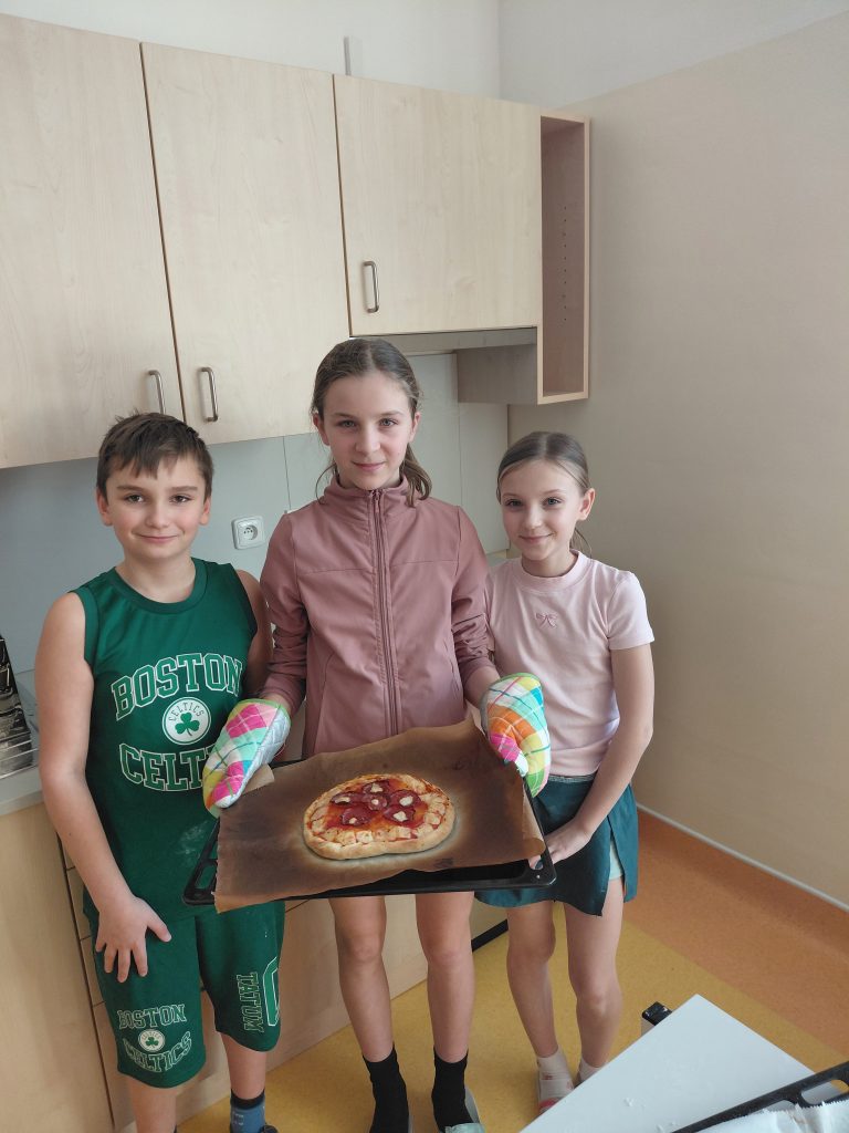 Dnes si žáci 6. třídy v rámci pracovních činností pochutnali na pizze. Těsto dostali a ostatní ingredience si přinesli dle vlastních chutí. Příští hodinu plánují sladké dezerty, věřím, že se jim bude dařit stejně jako dnes.