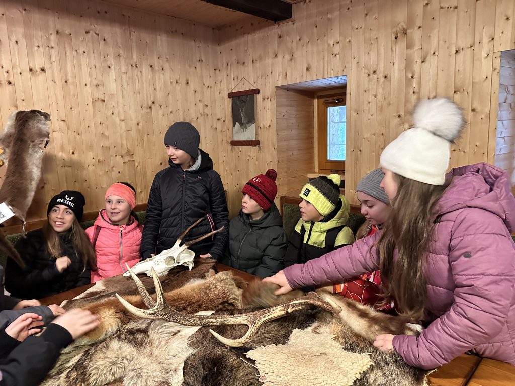 Před volným víkendem se žákům 5. ročníku naskytla možnost návštěvy přezimovací obory v Horních Lysečinách, byla by škoda toho nevyužít, a tak jsme ještě před začátkem vyučování, již v půl osmé ráno, odjížděli směr Horní Maršov. Cesta byla krátká a téměř v cíli bylo jasné, že vjíždíme do míst, kde lišky dávají dobrou noc. Krásná krkonošská krajina, jen pár chaloupek, šumění potoka, značka ideál. Před branami obory nám bylo důrazně řečeno, že pokud nebudeme dostatečně ukáznění a tiší, jeleni za námi z přilehlých lesů nesestoupí. Pánové nachystali, dle jejich slov, lesní zvěři svačinku a my netrpělivě čekali, kdy nás vyzvou a my budeme moci přejít do míst pozorovatelny. Netrvalo dlouho a mohli jsme zhlédnout něco málo přes 60 kusů jelenů, laní a kolouchů. Nádherná podívaná! Potom následovalo povídání a zodpovězení všech našich otázek panem Vávrou, který se o oboru a samotné krmení stará. Obora slouží především k tomu, aby po dobu od napadnutí prvního sněhu až po Velikonoce tato zvěř neničila lesní porost v přilehlých lesích. Návštěvu všem vřele doporučujeme, přičemž za přítomnosti sněhové pokrývky musí být podívaná ještě o něco kouzelnější.