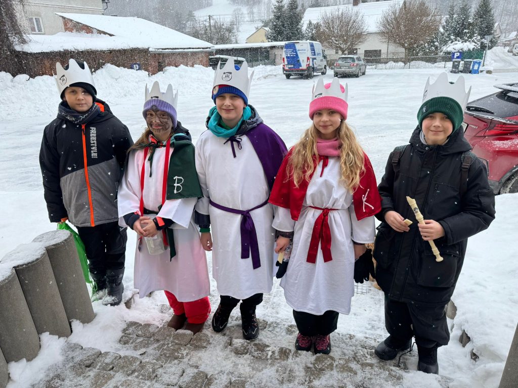 Žáci 4. a 5. třídy, za doprovodu starších spolužáků z 8. a 9. třídy, se zúčastnili Tříkrálové sbírky v Mladých Bukách. V krásných tříkrálových kostýmech se vydali na cesty po městysu, kde koledovali v rámci této tradiční dobročinné akce.